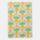 Mit diesem tropischen Ananas-Muster auf Orange Ogee Kitchen Handtuch fügen Sie Ihrer Küche einen Sonnenschein hinzu! Dieses fröhliche Handtuch mit spielerischen Ananas, die über eine lebendige, Retro-inspirierte Orangenform angeordnet sind, bringt tropischen Flair und kühnen Farbton in Ihren kulinarischen Bereich.