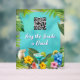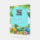 Tropisches Bar für einen Junggeselinnen-Abschied. Laden Sie einen QR-Code für Gäste hoch, um der Braut Geld für ihre Getränke zu schenken. Aqua blau mit großen Blätter, Hibiskus-Blume und Cocktails-Design. Der undurchsichtige Acrylgrand von 8x10 hat ebenfalls einen Blattrand. Optional kommt Holz dabei. Einige der größeren Größen funktionieren auch, aber die Platzierung des Designs kann sich ändern.