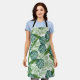 Trendy tropische Schürze mit Illustration von Blätter von Monstera, Bananenblättern und Palmenblättern.