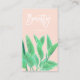 Eine elegante moderne, stilvolle Schönheits-Visitenkarte mit eleganter Skripthandbeschriftungs-Arttypographie im Weiß auf handgemaltem tropischem Blattparadiesvogel des Aquarellgrüns erröten an rosa Hintergrund. Wenn Sie irgendeine Kundenbezogenheit benötigen, zögern Sie nicht, wenn Sie mit mir in Verbindung treten