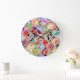 Tropisches Blumenmuster, lebhafte Farben. Große Wanduhr