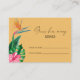 Diese farbenfrohe tropische Blumen und tropische Farbe Hintergrund Brautdusche Einladung. Das Design besticht durch ein elegantes Bouquet mit klassischen Strandfarben und Blume, darunter rosafarbener Hibiskus, orangefarbene und blaue Paradiesvögel, grüne Vegetation und dunkelgrünes Palmenblatt.