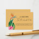 Diese farbenfrohe tropische Blumen und tropische Farbe Hintergrund Brautdusche Einladung. Das Design besticht durch ein elegantes Bouquet mit klassischen Strandfarben und Blume, darunter rosafarbener Hibiskus, orangefarbene und blaue Paradiesvögel, grüne Vegetation und dunkelgrünes Palmenblatt.