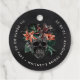 Ein wunderschönes Halloween-Brautparty mit einer tropischen Blumenschmuckillustrierung mit orangefarbenen und bordeauxfarbenen Blume und grünem Dschungelblättern auf einem rauchigen schwarzen Hintergrund. Dieses einzigartige und elegante Halloween-Brautparty-Geschenktag mit individuellem Text in einem abgerundeten Layout.