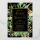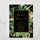 Diese elegante Party Einladung aus tropischem Brautparty mit grünen und goldenen Palmen, Philodendron und Farn-Blätter auf schwarzem Hintergrund. Ein eleganter Rahmen aus Goldfolie hebt den Goldfolientext hervor. Goldfolien-Spritzer unterstreichen dieses exotische botanische Design und bringen ein wenig raffinierte Launen in die Einladung. Diese Insel-Oase lädt zu einem Besuch ein, um einen Brautparty-Tee zu trinken, am Strand zu trinken oder tropisch zu trinken.