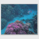 Tropische Fische schwimmen um schöne lila Meereskorallen in dieser Untersee-Foto-Szene.