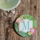 Tropisches Flamingo und Hibiskus Blume Monogram Getränkeuntersetzer