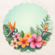 Eine strahlende Anordnung tropischer Blume, darunter lebhafter Hibiskus, zarte Plumeria und beeindruckendes Paradies, ergänzt durch üppige grüne Blätter. Set vor einem beruhigenden, hellgrünen Farbverlauf, dieses Design strahlt die Schönheit und Ruhe der tropischen Natur aus.