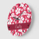 Tropisches Fuschia Blumenmuster Große Wanduhr