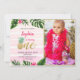 Tropische Einladungskarte zum 1. Geburtstag mit Personalisiertem Foto, Gold Glitzer Rahmen, String Lights und Gold Tropical Pineapse
