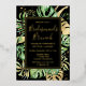 Dieses elegante Brunch-Angebot von Brautmädchen mit tropischen Blätter aus Grün und Goldpalme, Philodendron und Farn auf schwarzem Hintergrund. Ein eleganter Rahmen aus Goldfolie hebt den Goldfolientext hervor. Goldfolien-Spritzer unterstreichen dieses exotische botanische Design und bringen ein bisschen moderne Laune in die Einladung. Diese Insel-Oase lädt zu einem beliebten Brunch mit köstlichen Salons, Strand oder tropischen Brautmädchen ein.