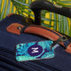 Modernes, fettes tropisches Blattmuster in komplementären Grün- und Blautönen.