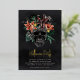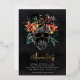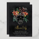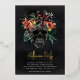 Ein wahnsinnig elegantes Halloween-Party mit einer tropischen Blumenschmuckillustrierung mit orangefarbenen und bordeauxfarbenen Blume und grünem Dschungelblätterdach auf einem rauchigen schwarzen Hintergrund. Personalisieren Sie diese einzigartige und elegante Halloween-Party-Einladung mit Ihren Veranstaltungsdetails in weißer Schrift. Aufnahme für ein Halloween-Party mit einer zusätzlichen Textzeile am unteren Rand, um zusätzliche Details zu teilen. Goldfolienakzente verleihen dieser atemberaubenden Einladung Luxus.