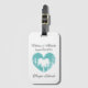 Tropische Flitterwochen Ziel maßgeschneidertes Hochzeitsgeschenk Gepäcktag für Hochzeitsreisende. Romantisches Logo aus verwitterten Palmen mit Ihrem einzigartigen Ortstext. Personalisiertes Design mit eleganter Schriftzeichen-Typografie für den Namen von Braut und Bräutigam plus Heiratsdatum. Erstellen Sie sie für Braut- und Bräutigam-Paar. Ideal für Hochzeiten, Brautparty und Junggeselinnen-Abschied. Beliebte Reiseziele; Jungfrauen Inseln, Bahamas, Kaimaninseln, St. Lucia, Aruba, etc. Rustikales aquamarin-türkisblaues Symbol Liebe Symbol.