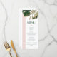 Tropisches Hochzeitsmenü am Strand mit rosa Streif Menükarte