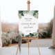 Mit diesem tropischen Willkommensschild mit üppig grünen Blätter und botanischen Elementen heißen Sie Ihre Gäste stilvoll willkommen. Dieses Zeichen ist ideal für eine Urlaubs- oder Strandhochzeit und Set den Ton für eine unvergessliche Feier in einem tropischen Paradies.