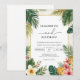 Dieses tropische Design wird von üppigen smaragdgrünen Pflanzen umrahmt. Ein Hauch von blühenden Blüten verleiht Ihrer Veranstaltung eine fröhliche Touch und schafft eine lebendige und exotische Atmosphäre.