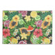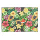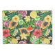 Tropisches Mischobst, Blume und Blätter auf schwar Kissenbezug