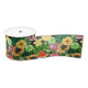 Tropisches Mischobst, Blume und Blätter auf schwar Satinband