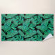 Dieses schöne Badetuch ist mit handgemalten Monstera und anderen tropischen Blätter in schöner grüner Farbe auf schwarzem Hintergrund gestaltet.