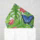 Aquarellmuster mit Toucan, Schmetterling, Hibiskus und tropischen Blätter. Ich malte Elemente für das Muster mit Aquarellen auf Papier, dann scannte ich sie und machte das Muster in Illustrator