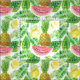 Wasserfarbenmuster mit tropischen Blätter und Früchten.