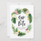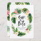 Tropisches Palmenblatt und Blumenblättern Save The Date
