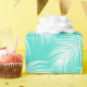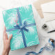 Ein fröhliches Verpackungspapier, das unter anderem Ihr Geschenk auffällig macht. Dieses Design zeichnet sich durch ein Muster aus weißen Palmenästen auf einem hellen, türkisfarbenen Hintergrund aus. Sie können die Hintergrundfarbe in eine andere Farbe ändern, indem Sie die Schaltfläche "Anpassen" auswählen und einen anderen Hintergrund auswählen. Dieses Verpackungspapier Anzug jedes Mal.