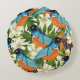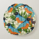 Tropisches Papaya- und Vogelmuster. Rundes Kissen