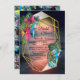 Die Nacht ist kurz vor Sonnenuntergang in ein tropisches Paradies gestürzt. Der Papagei erwacht, versteckt hinter Monstera-Blätter, die durch das üppig blühende Blätterdach gucken, kurz bevor die Sterne die spektakuläre Landschaft durchbrechen, um ein feststehendes Thema oder eine Hochzeitskollektion zu kreieren