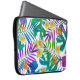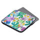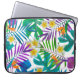 Farbenfrohe tropische Blätter von Palmen, Monstera, Plumeria Blume und Paradiesvögeln