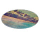 Tropisches Paradies: Meer, Hotel, Strand. Schneidebrett