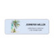 Aquarellbild einer tropischen Palme und Surfbrett für alle, die gerne reisen, surfen und am Strand verbringen möchten. Sie können den Hintergrund leicht ändern. Es ist einfach, sie durch Änderung des Namens/Datums/Themas usw. anzupassen.