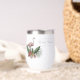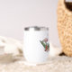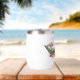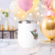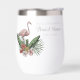 Dieser elegante Brautparty-Thermalweintumbler bietet handgezeichnet flamingo-thematische Illustrationen mit schwarzer Tinte, mit rosa Flamingos, Hibiskus- und JasminBlume, tropischen Blätter und Ananas. Personalisieren Sie Ihre Daten mit Name, Ereignis und Datum.