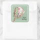 Tropisches Pink-Protea-Flora auf Minze Quadratischer Aufkleber