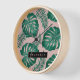 Tropisches Pink und grüne Palme Blätter Muster und Uhr
