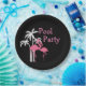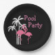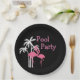 Pool-Party-Papier-Teller des stilvollen und trendy Strandthemas tropischer entworfen mit niedlichen rosa Flamingos und Palmen mit dem Wortpool-Party, das Sie für Ihre SommersozialAnsammlung mit Freunden und Familie online besonders anfertigen können.