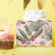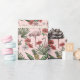 Dieses elegante, tropische Verpackungspapier zeichnet sich durch ein blumengeschmücktes Muster aus handgezeichnet rosa Flamingos, Hibiskus- und Jasmin-Blume, Ananas, Bananen-Blätter und Tropengetränken aus.