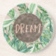 Tropisches Pfirsichgrün Blätter Glitzer Traum inspirierendes Zitat auf Schokoladenbraun Kreis (Bild des Glitzer)