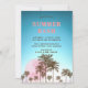 Feiern Sie ein Sommerfest im Party mit diesem von Hand gezeichnet Design mit schwingenden Kokospalmen vor einem rosafarbenen Mond und Aqua-blauen Hintergrund. Der Backer verfügt über eine ergänzende blaue Farbe, die das Design ergänzt. Ideal für ein Party am Strand oder am Pool!