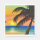 Geburtstagsparty Servietten. Vintage Farben Palmen Silhouette und Ozeanwellen auf einem Sandstrand ai generierte Kunstwerke.