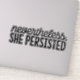 "Trotzdem beharrte sie." Die feministische Schlacht weint den Widerstand. In hübschen Skriptbuchstaben, um das zerbrechliche männliche Ego nicht einzuschüchtern.