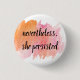 "Nichtsdestotrotz beharrte sie" über eine Wäsche von orangen und rosa Wasserfarben.