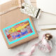 zeigt farbenfrohe Regenbogenforelle, die eine Fliege mit einem Siebdruck-Look jagt!