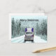 It's snowing like crazy and the dedicated long haul, over the road truck driver continues on to ensure all Christmas deliveries are made on time truckers Christmas holiday postcard