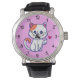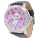 Uhr, Klassische Damenuhr mit schwarzen Lederarmband