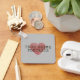 Ein Schlüsselanhänger für echte Podcast-Liebhaber überall, mit einem roten Fingerabdruck-Herz mit Schreibmaschinenstil.