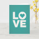 This greeting card keeps things simple and heartfelt, with the word “LOVE” as the main focus. The letters are in white, all caps, and arranged in a neat block with “LO” on top and “VE” underneath. The “O” is replaced by a white heart, which makes the message feel extra warm and direct ❤️. The background is a deep teal color with a faint paper-like texture that adds a gentle, cozy touch. Each letter has a light shadow underneath, giving the design a small bit of depth without making it busy. The text looks like straightforward block lettering, centered on the front, and easy to read at a glance 💌. It’s a great pick for romance, affection, or even a sweet note to a close friend—maybe with a little chocolate on the side 🍫