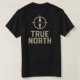 Large, modern block letters “True North” above a clean, simple compass graphic in off-white. Only a hint of distressed detail to retain grunge style, background pure black and uncluttered.