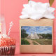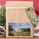 Rechteckiger Aufkleber aus weißem Foto, konische, traditionelle Trulli-Häuser mit einer Einfahrt und ein Garten mit Olivenbäumen unter einem schönen Himmel auf einem Ferienort in der Nähe von Alberolbello in Apulien/Apulien in Süditalien.